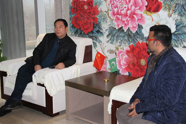 2015-1-24上午在東起集團在(外貿公司張總)的帶領下,一行四人來到公司,進行友好來訪,公司董事長王立建親自接待并陪同客人到車間觀摩。雙方在友好合作的前提下進行了細致的交談,并達成共識。巴基斯坦客人對東起公司做出了肯定,并草擬了合作意向書,此次來訪另客人在十分滿意的前提下***結束!